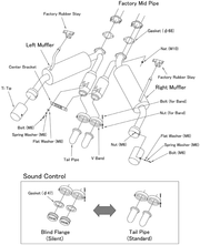 By adopting the included tail pipe to the sub-silencer section of the main muffler, there is a sporty sound with an emphasis on drone in aggressive sound mode (without lids). By gentle sound mode (with lids), the sub-silencer functions as a silent chamber and can be switched to comfortable sound with less drone in daily driving. This single unit allows the user to enjoy two types of exhaust sound.