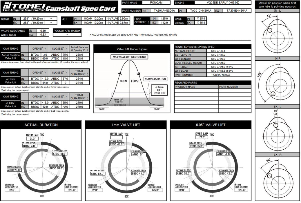 *Compatible with OEM Valve Lifter, Cam Gear and Valve Spring or Tomei Valve Spring - TM-TA304A-NS02A*