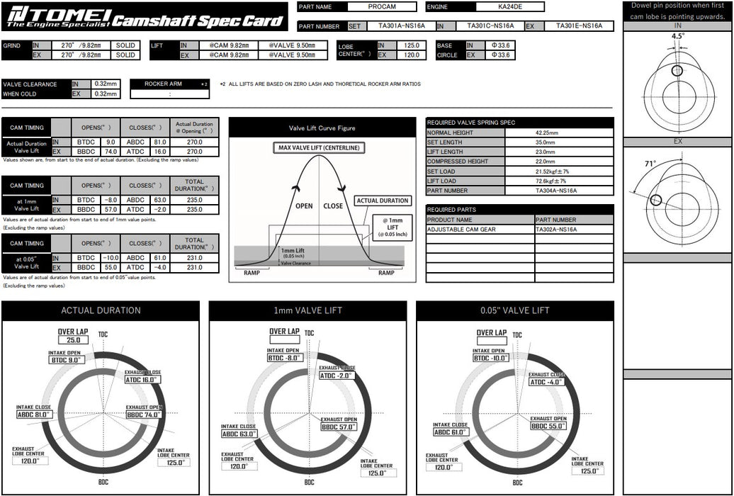 For further guidance on valve timing optimization, please refer to the installation manual and/or the "Valve Timing Calculator" available on the TOMEI USA homepage.