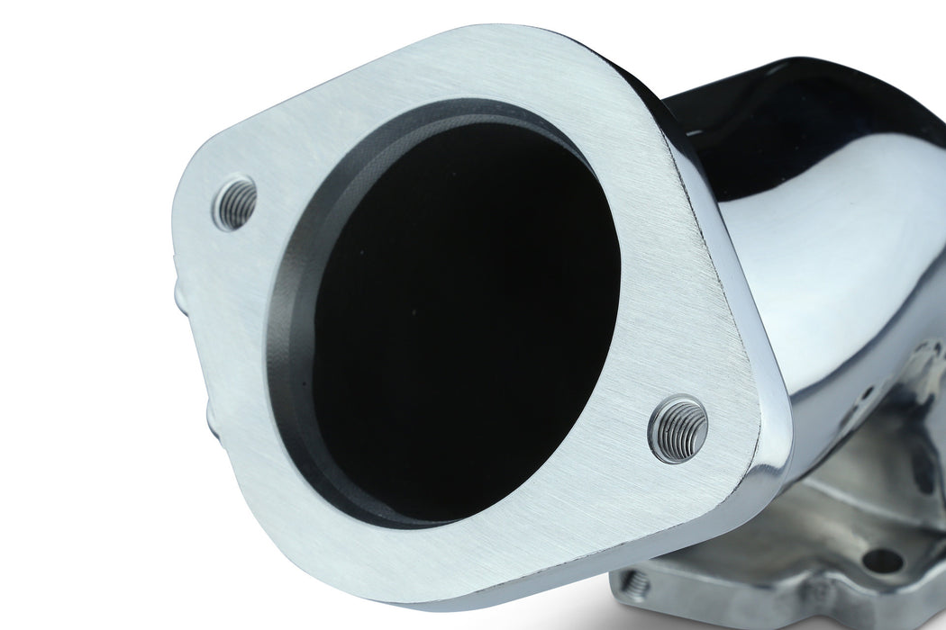 The stock turbine outlet pipes internal diameters are small and restrictive which raises the secondary exhaust pressure. When the secondary exhaust pressure rises it will cause power loss and lack of response with unstable boost pressure. The TOMEI outlet pipes have been specifically designed with the larger internal diameter to improve exhaust gas flow efficiency with the reduction in the secondary exhaust gas pressure. This design has been proven effective on the engine bench dyno R&D as well as in the real-world environment as proven on the racetracks with our ARMS turbines.