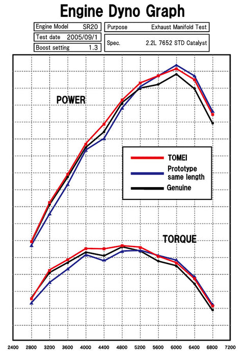 Our EXPREME exhaust manifold is now available for SR20 owners who want a performance upgraded from the genuine exhaust manifold. With our product you can retain the genuine setup and no special modifications are needed to fit the standard turbo. With the SR20DET the exhaust manifold was designed to be close from the exhaust port to the turbine. With the comparison test of our isometric prototype & the factory genuine manifold which also utilizes the same layout, it shows that ours has succeeded in delivering an overall improved performance in both torque and power increase in areas like in the higher RPM range in which you were not able to utilize before. With our extensive testing we have reached the conclusion that the normal design is superior as a total overall efficiency. So to develop an exhaust manifold similar with the design and setup as the factory manifold we were finally able to produce a product worthy to bear our name as a product that has the potential to deliver an overall increase in performance.