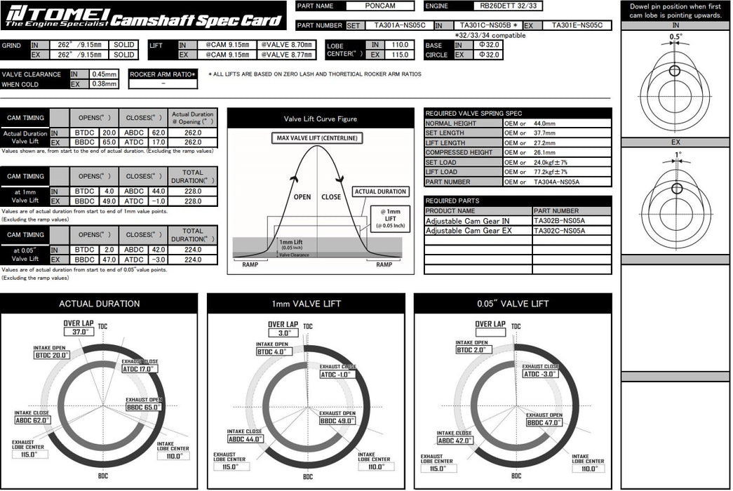 *Required Adjustable Cam Gear or Tomei Cam Gear - Intake. Click here.